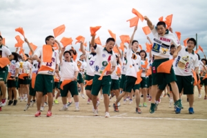 城東高校では、1年次から3年次までのクラスをA~Hの8ブロックに縦割りにして競います。白熱した競技の様子を写真でお楽しみください。