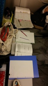 新幹線内は楽しい空気の中にも地道に努力する生徒の姿も…。