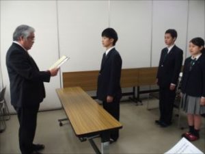 校長より、一人一人名前を読み上げての、卒業証書授与、