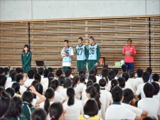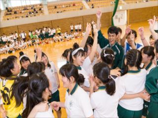 5月8日(火)にジップアリーナ岡山にて球技大会を開催しました。午前中はソフトバレー、午後からの決勝トーナメントではバレーボールをしました。どのチームもこの日のために昼休みや放課後に練習を重ね、当日は白熱した戦いが繰り広げられました。自分の試合だけでなく、空いている時間は自分のクラスを大きな声で応援し、どのクラスも一丸となって戦う様子が見られました。