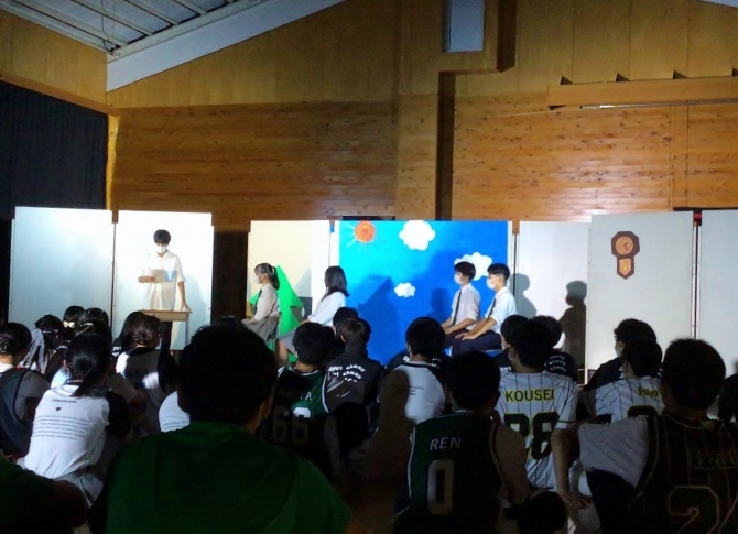 オープニングパフォーマンスを体育館と中庭の2カ所で行い、生徒たちはそれぞれの場所でパフォーマーに魅入っていました。