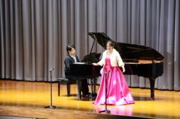 創立記念式典では、校長から、本校が育んだ歴史や数々の取り組みや未来の生徒像について語られました。芸術鑑賞会では、本校卒業生の森野美咲様(ソプラノ歌手)と木口雄人様(ピアニスト)をお招きし、情熱的な歌唱と演奏、音楽学類生徒4名との二重唱、心に響くアドバイスを含むトークコーナー、最後には全校生徒との校歌斉唱が行われ、音楽を存分に味わう秋のひとときとなりました。