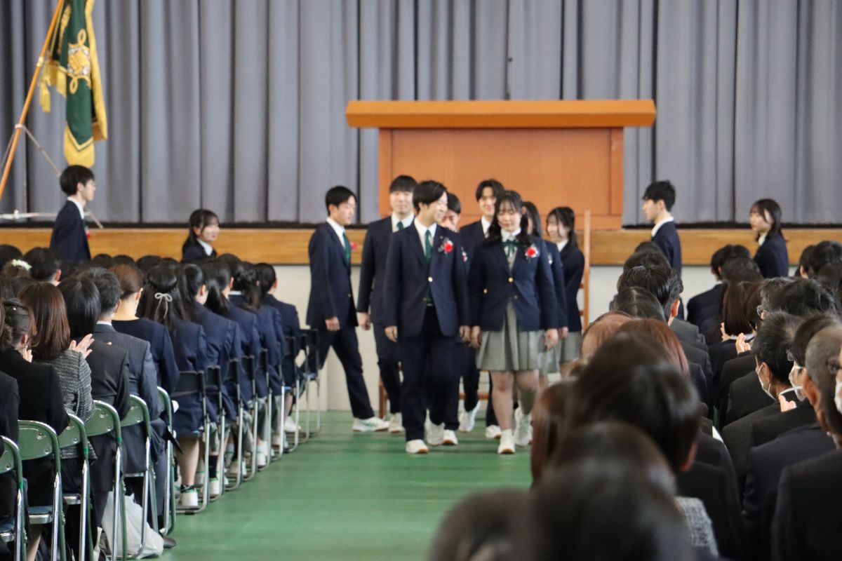 卒業生退場では、みんな元気に晴れやかな表情で体育館を後にしていました。