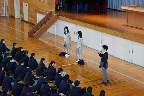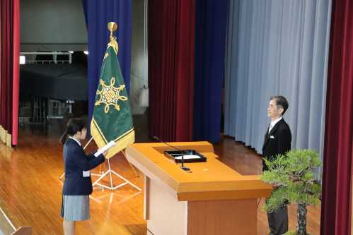 また、午後には始業式が行われました。40期生の1年生も加わり、校長先生から新年度にあたっての心構えの指針となるお話をうかがいました。