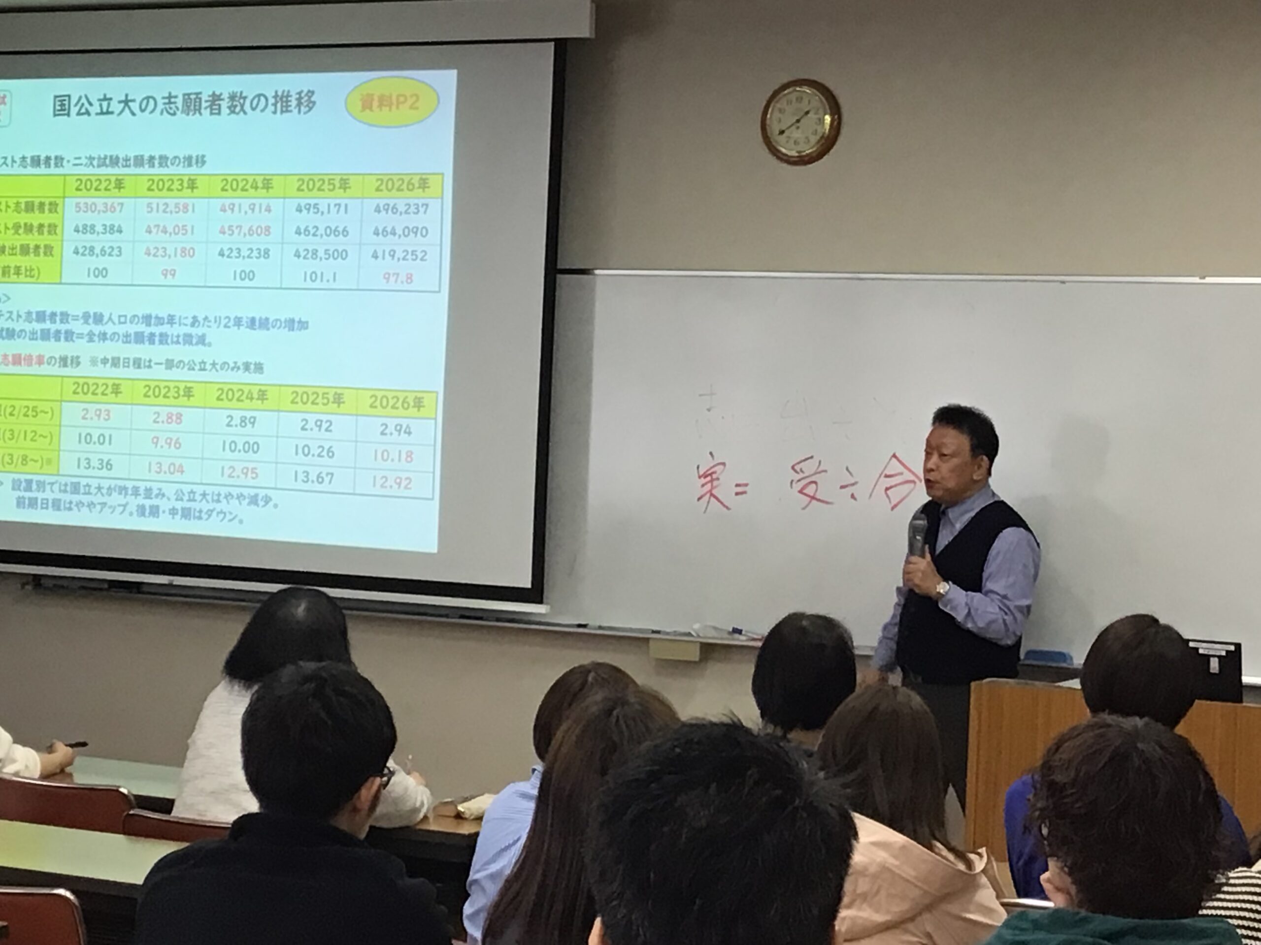 4月9日(木)に3年次保護者対象、10日(金)に3年次生徒対象の進路講演会が行われました。近畿大学入学センターより屋木清孝様を講師にお迎えし、大学入試の現状や大学合格に向けた貴重なお話をいただきました。将来の夢を軸に、大学や学部の選び方、受験勉強に向けた心構えなどについて、これから控える大学受験だけでなく、その先の人生にも役立つ内容を熱意をもって語っていただきました。