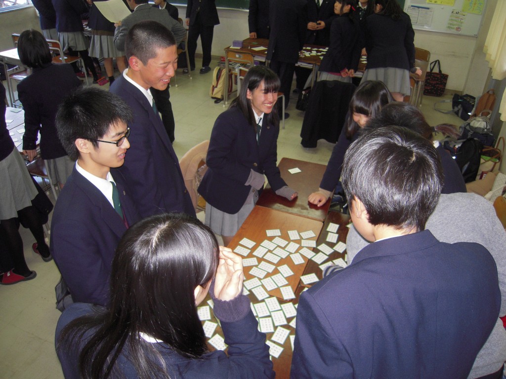 クラス予選の結果、取り札の多い人が本選に出ます。昔から多くの学校で行われているこの行事。何となくなごやかな気持ちにさせてくれます。