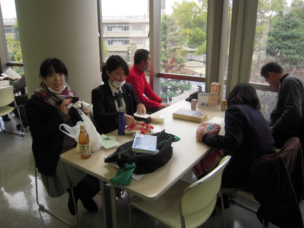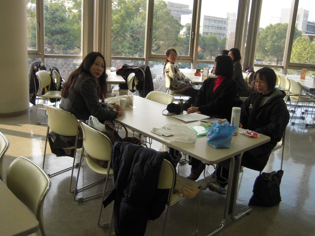 真冬とはいえ、日当たりのよい食堂はポカポカしています。窓の外は落ちついた大学の雰囲気です。